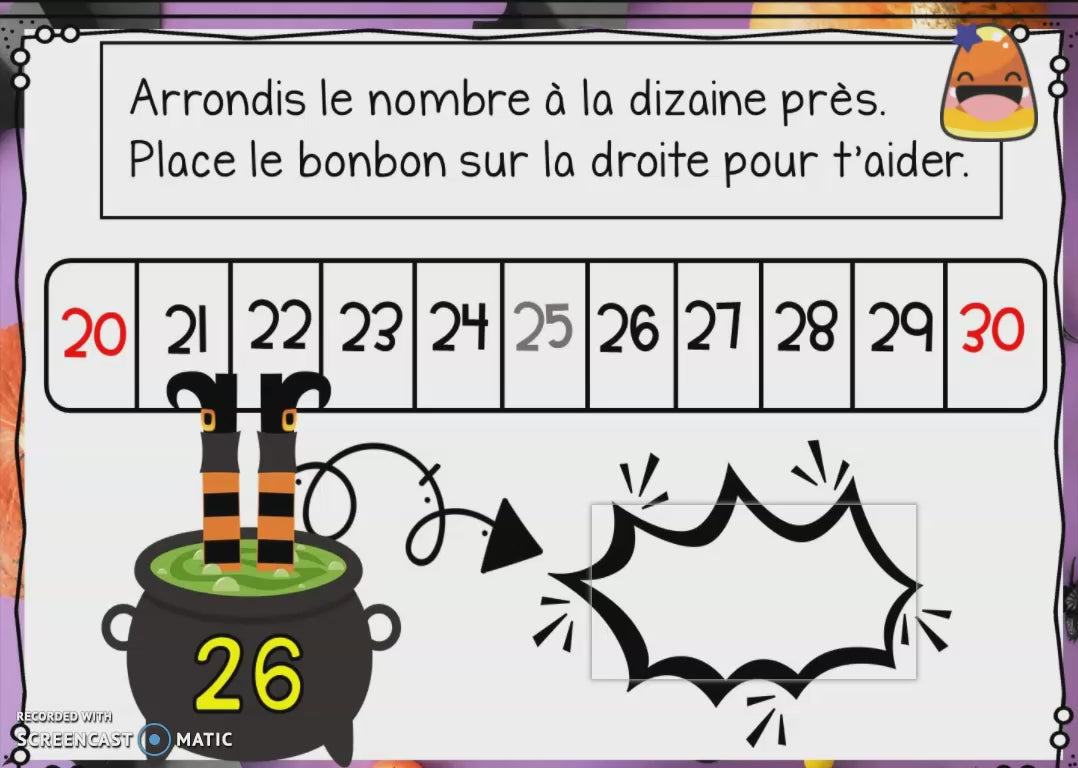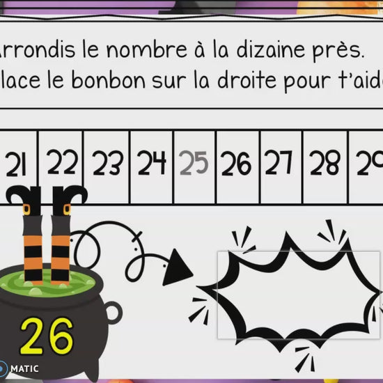 🎃 Une pluie de bonbons et de mathématiques! 🍬 Cette activité de Boom Cards d’Halloween transformera l’apprentissage de l’arrondissement en un jeu amusant et visuel! Les élèves glissent des bonbons, utilisent une droite numérique et apprennent à arrondir à la dizaine près tout en s’amusant!