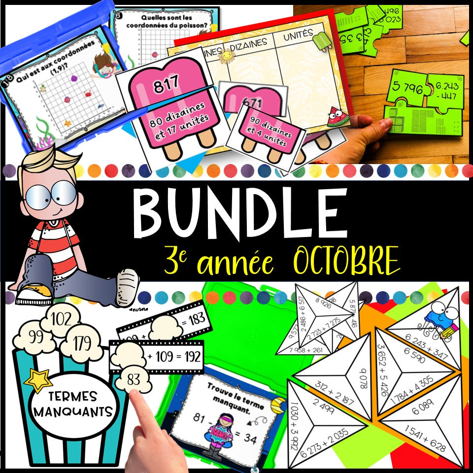 Avec ce bundle d’ateliers de mathématiques spécial octobre, vos élèves du 2e cycle consolideront leurs apprentissages en addition, soustraction, plan cartésien, décomposition et termes manquants. Un ensemble complet et varié pour pratiquer tout en s’amusant !