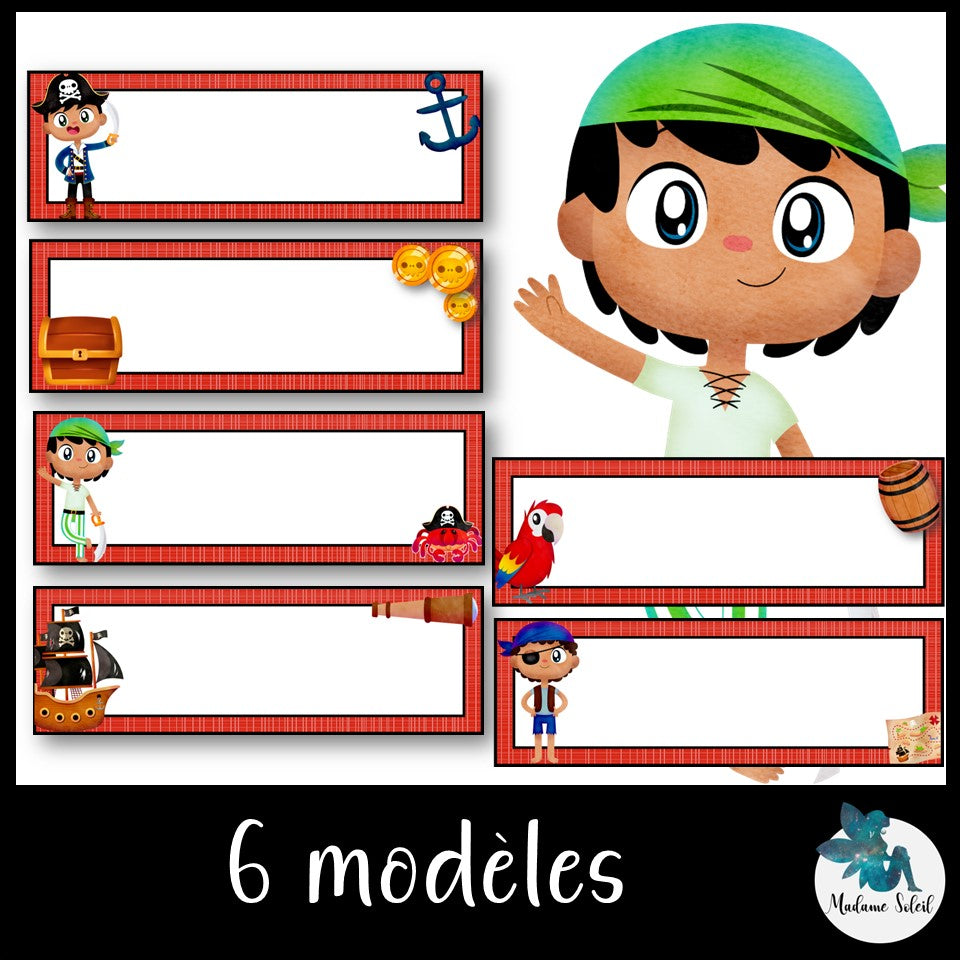 - 6 modèles d’étiquettes illustrées (pirates variés)