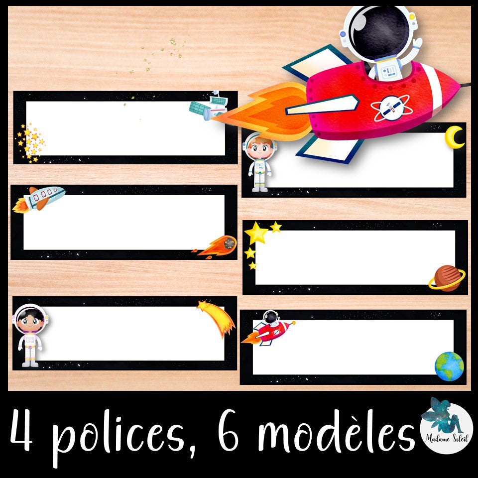 - 6 modèles d’étiquettes illustrées (thème espace)