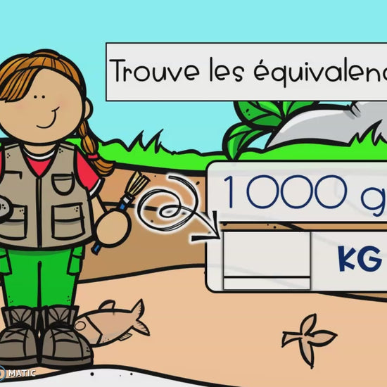 Avec cette activité interactive Boom Cards, vos élèves apprendront à convertir des unités de mesure de masse en grammes (g) et kilogrammes (kg) tout en vérifiant les équivalences.