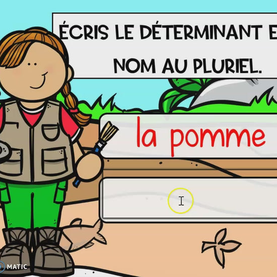 Conçue pour les élèves de 2e et 3e année, cette activité de grammaire interactive aide les enfants à maîtriser l’accord entre les déterminants et les noms au pluriel. Idéale pour les ateliers de français, les centres de littératie, l’orthopédagogie ou l’enseignement à distance — le tout sur un thème d’archéologie amusant!