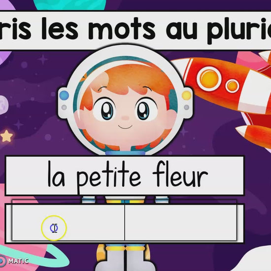 Cette activité interactive de Boom Cards propose aux élèves de 2e, 3e et 4e année de s’exercer à écrire des groupes du nom au pluriel, en respectant l’accord entre le déterminant, le nom et l’adjectif. Une activité complète pour développer la grammaire de manière autonome et motivante 🚀🌌