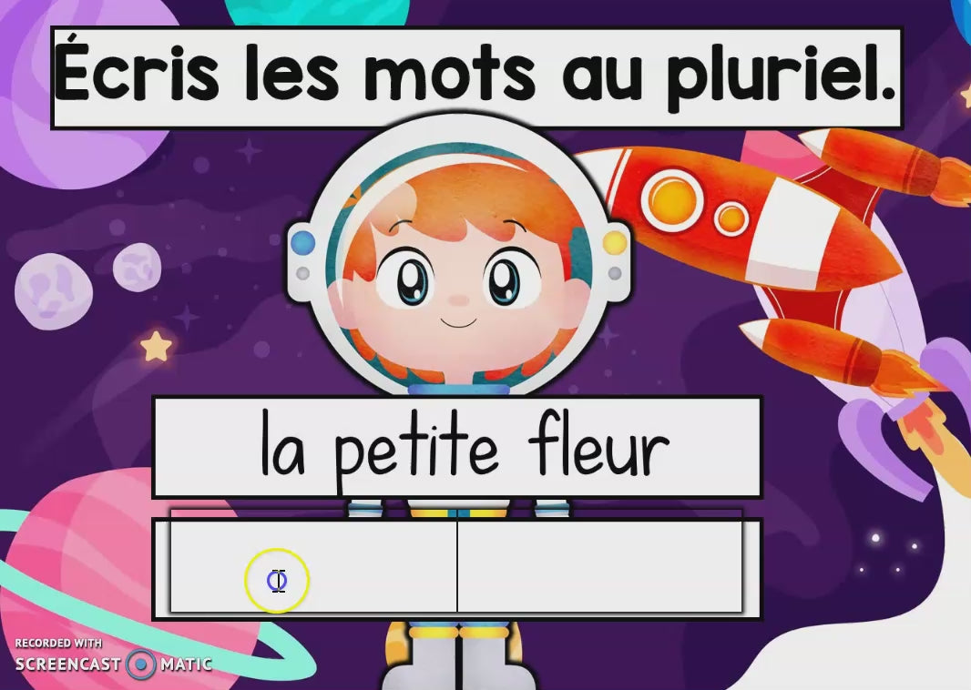Une zone pour écrire la bonne forme accordée (ex. les petits astronautes)
