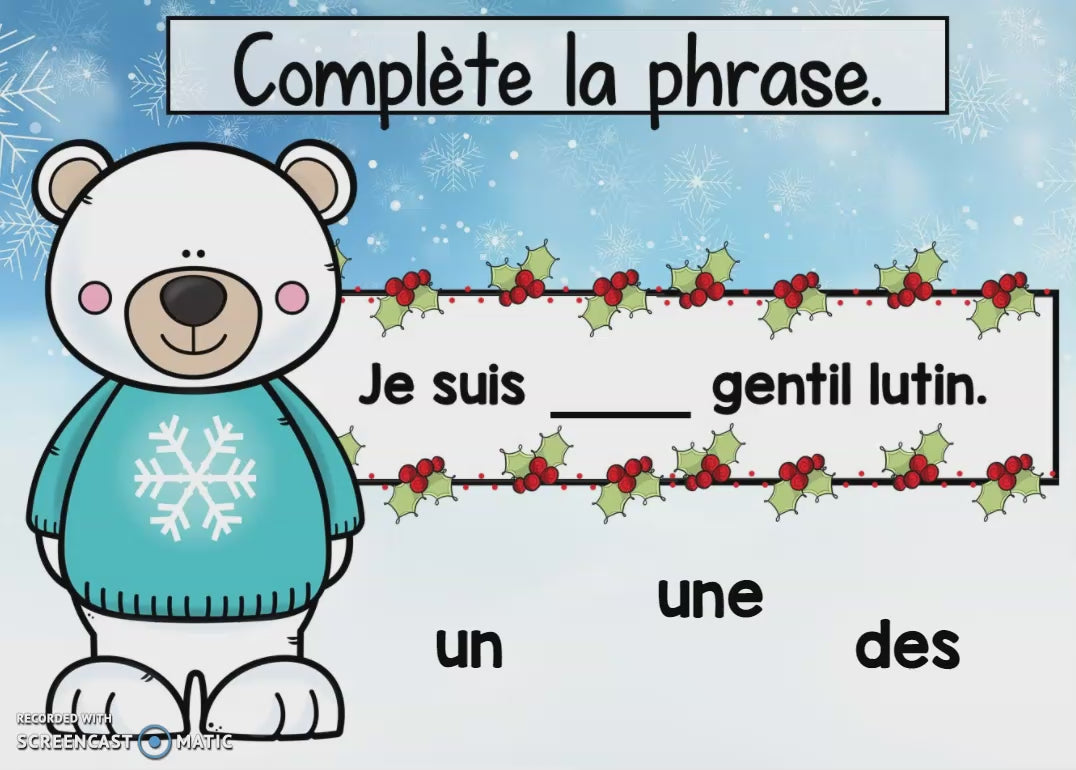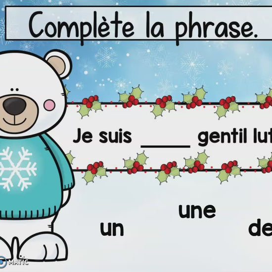 Cette activité de français interactive permet aux élèves de 2e et 3e année de pratiquer l’accord du déterminant avec le nom dans des phrases hivernales. C’est l’atelier parfait pour travailler les accords dans le groupe du nom, que ce soit à la maison, en classe ou en orthopédagogie.