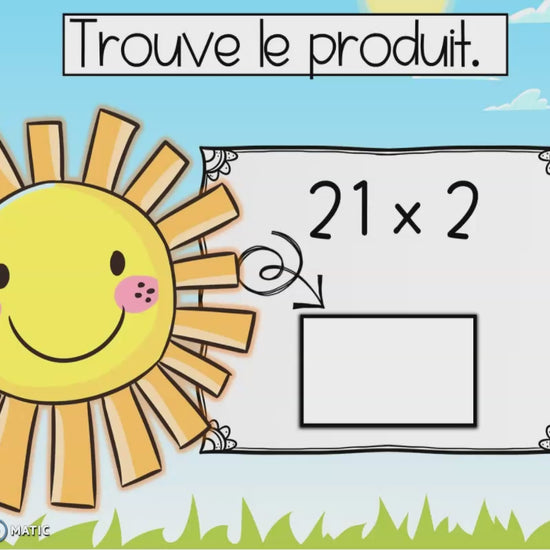 Vos élèves de 3e, 4e et 5e année s’entraîneront à multiplier des nombres à 2 chiffres par 1 chiffre (facteur ≤ 5) dans un contexte amusant et motivant.