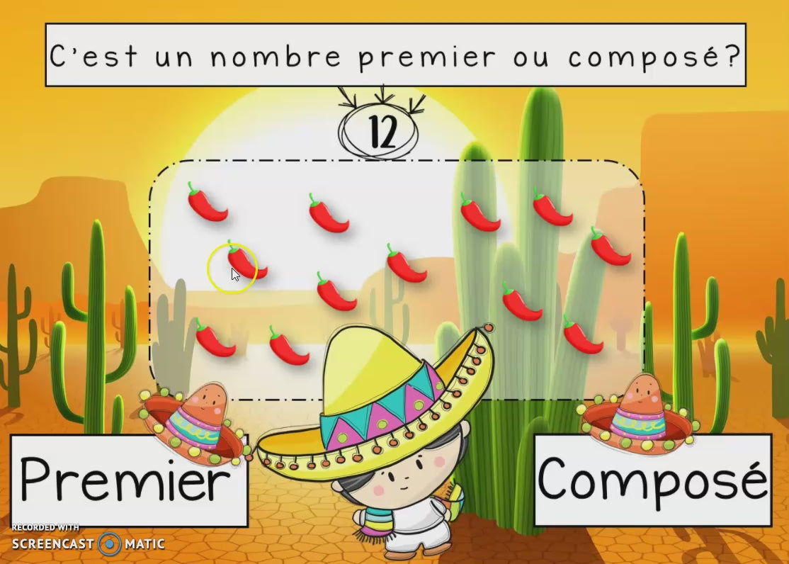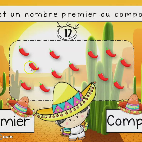 Avec cette activité Boom Cards, les élèves exploreront les propriétés des nombres naturels : premier ou composé ? Ils pourront s’amuser à glisser les piments mexicains pour regrouper les facteurs ou tout simplement appuyer sur la bonne case pour valider leur réponse.