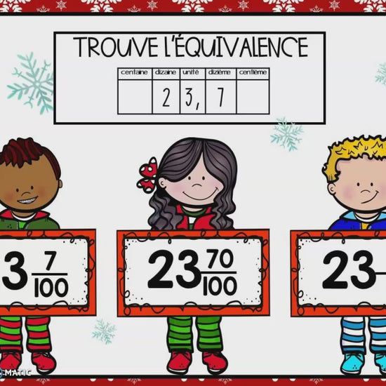 🎄 Les fractions se transforment en décimaux comme par magie ! ✨ Grâce à ces Boom Cards interactives, vos élèves découvrent l’équivalence entre nombres fractionnaires et nombres décimaux, tout en s’exerçant à écrire les nombres en lettres.
