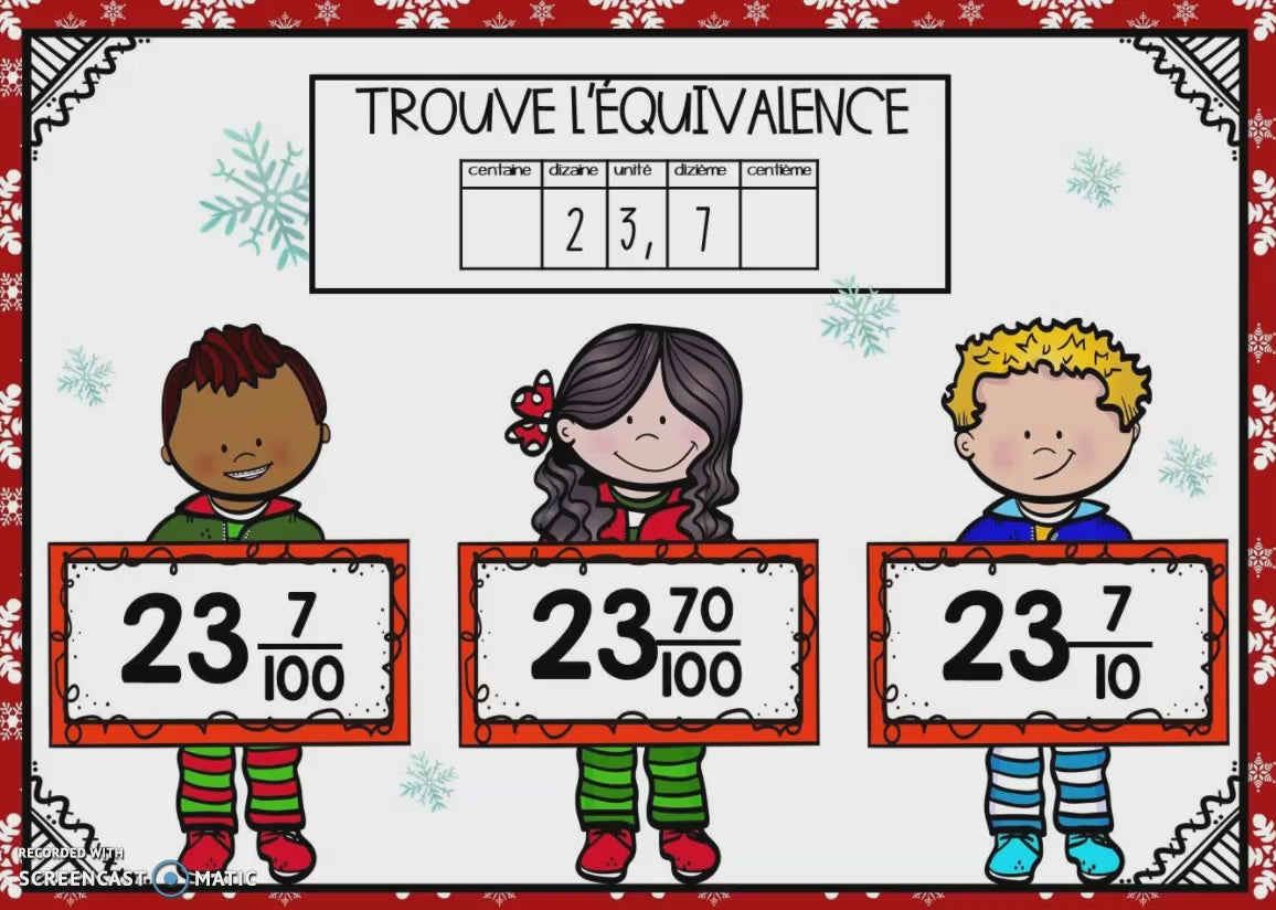 • Lire, écrire et comprendre l’équivalence fraction/décimal