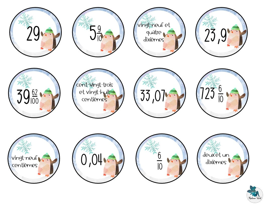 Nombres décimaux de l'hiver