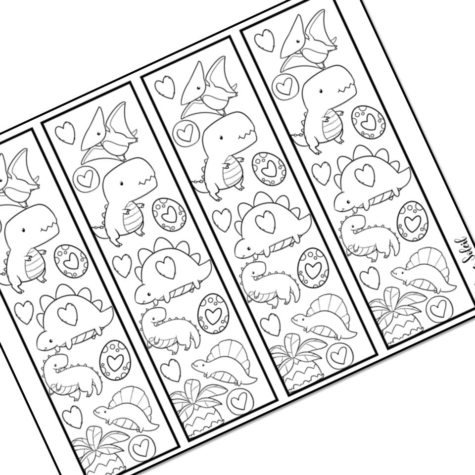 Ajoute une touche d’amour préhistorique à ta classe avec ces signets de St-Valentin à colorier – thème dinosaure doodle !