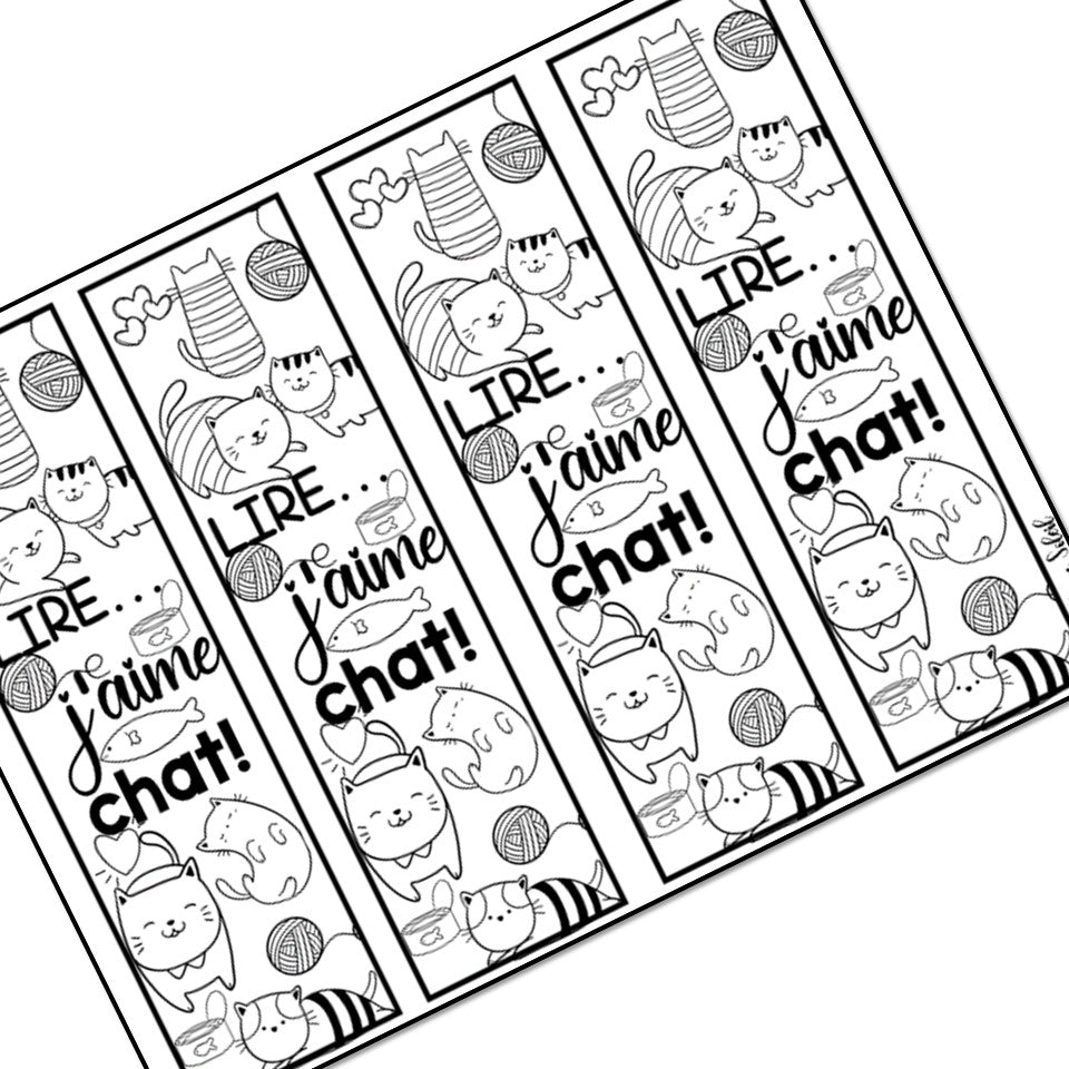 Ajoute une touche mignonne à vos activités de lecture avec ce signet de chat à colorier !