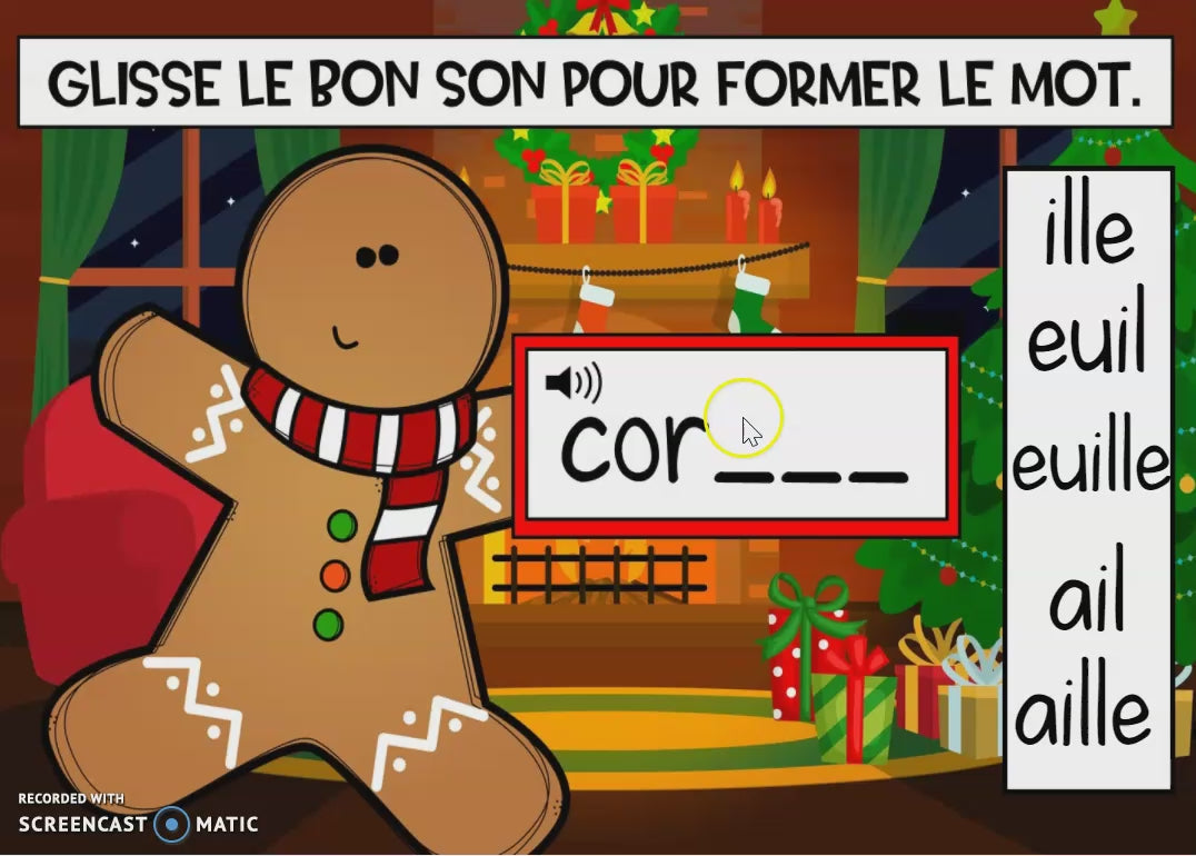 Sons complexes de Noël (ille, euil, euille, ail, aille) - Boom Cards