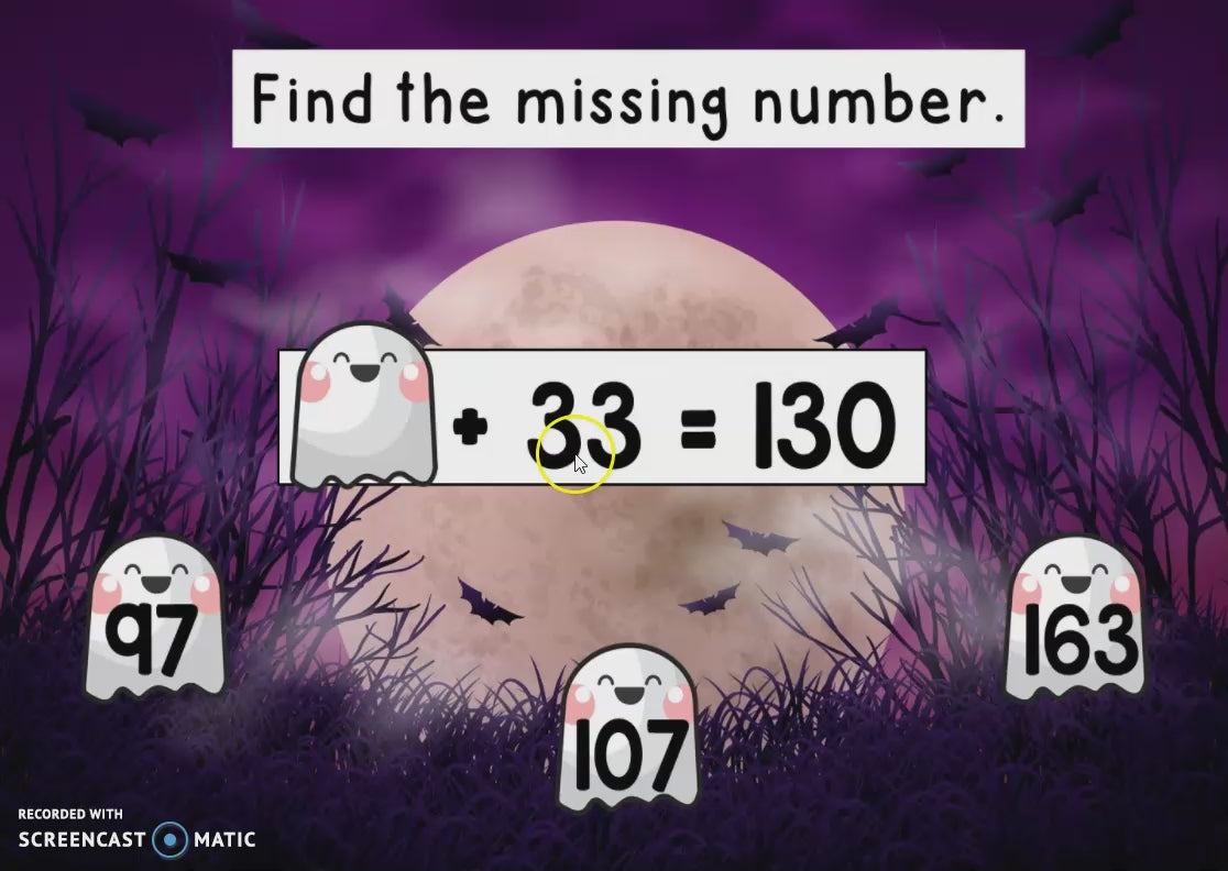 🎃 Les maths deviennent ensorcelantes avec ces Termes manquants de l’Halloween ! 👻✨ Avec cet atelier de Boom Cards, vos élèves de 3e année s’amusent à compléter des additions et soustractions jusqu’à 200 à travers un univers d’Halloween plein de défis magiques.